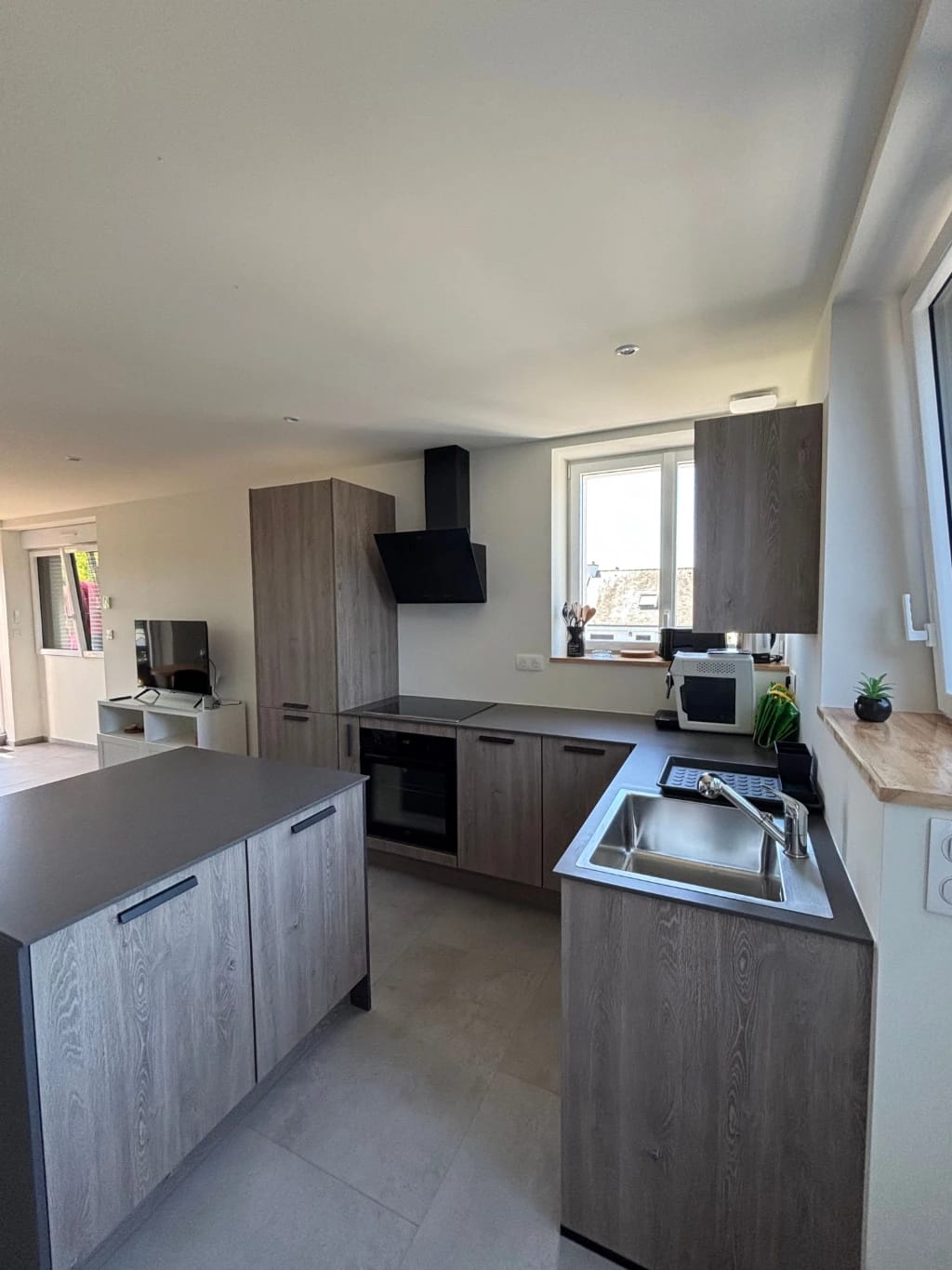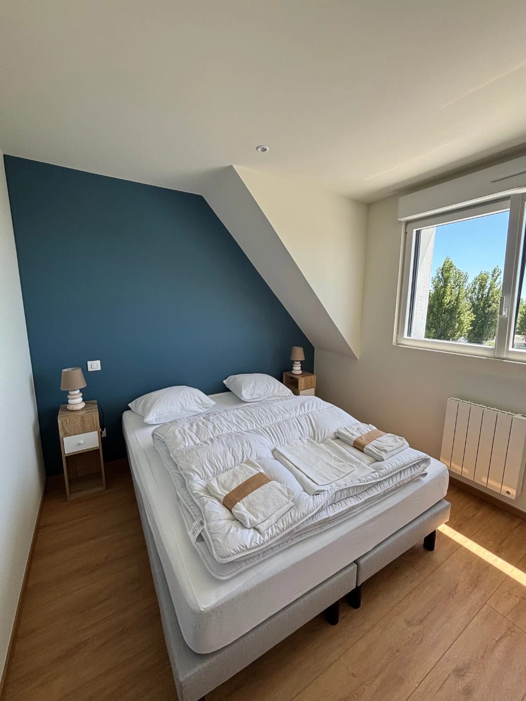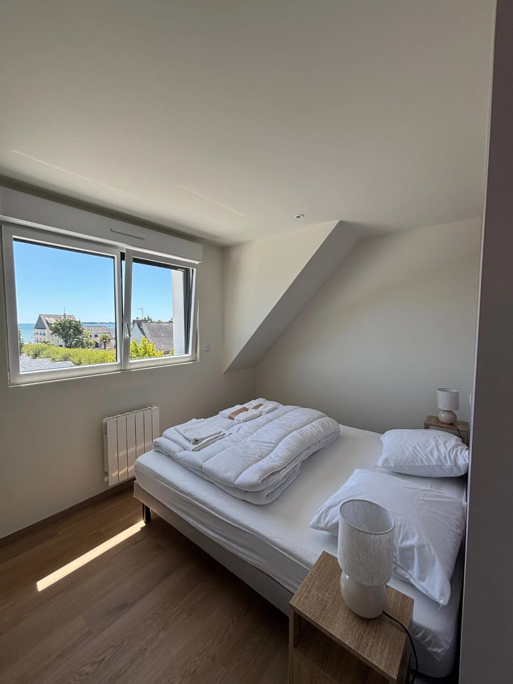 On the first floor, a convivial living room welcomes you with a 4K TV, Bluetooth speaker and Wi-Fi included to stay connected if needed. The kitchen is fully equipped with oven, microwave, dishwasher, bean-to-cup coffee machine and toaster. All you need to prepare your meals with ease, whether you want to cook after a trip to the Port-La-Forêt market or simply enjoy a quiet coffee in the morning.
