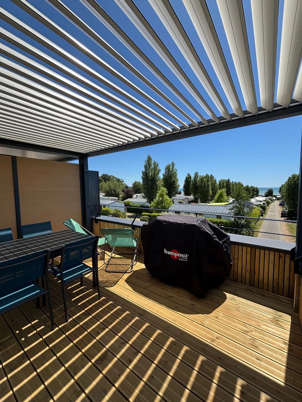 Each apartment has a 14 m² terrace covered by a bio-climatic pergola. Here you’ll find an electric plancha for your barbecue evenings. It’s the perfect place to extend a summer’s day, or to enjoy an aperitif under shelter when the weather changes, as it often does in Brittany.