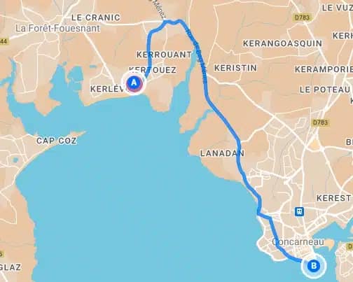 Il vous faudra un peu plus de 8 km pour atteindre Concarneau du camping ; avec environ 4 km de pistes cyclables. La piste cyclable n’est pas encore présente sur tout le parcours parfois vous serez sur la route et vous pourrez croiser des véhicules.