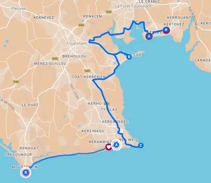 Les différents circuits au départ de La Forêt-Fouesnant